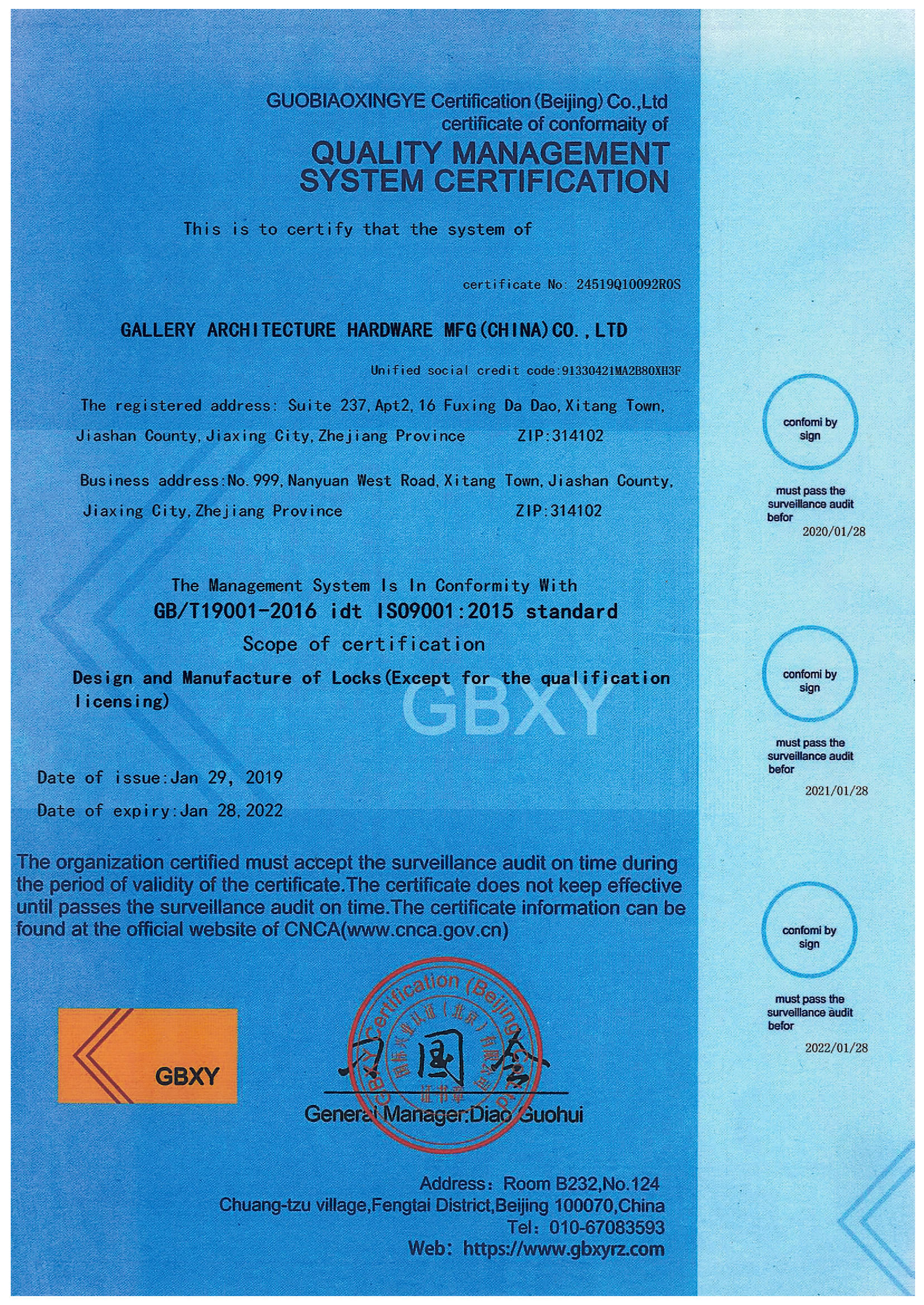 浙江堅迪五金制造有限公司始建于 1995 年。自 2003 開始,公司致力于高標準商業(yè)鎖的研發(fā)工作,并于 2006 及 2007 年,8700 插芯鎖系列獲得美國國家標準 ANSI A 156.13-2005 一級、ANSI A 156.2-2003 二級和美國 UL 10C3 小時防火測試認證。自 1998 年以來,公司不斷提升產(chǎn)品和客戶服務品質(zhì),并獲得了 ISO 9001 的認證。